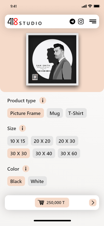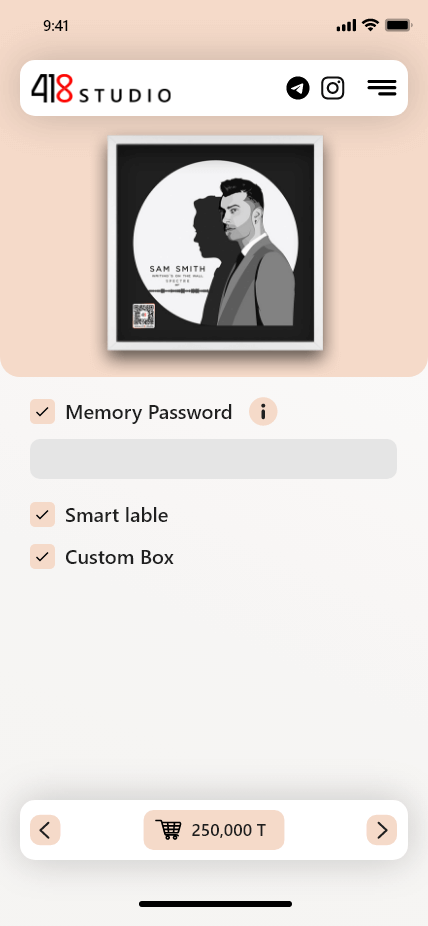 418 Studio's a platform to cherish our best moments in a fast and artistic way. Every day we take a lot of photos and videos, and sometimes we record some precious moments. It's really easy to lose track of them or never play them again. In 418 studio we tried to aim this problem and create a new and artistic way of saving memories. you can take a picture, and print it on a Photo frame, T-shirt, or even a coffee mug, and besides that, we will also print a QR code exclusive for your memories. after you scan the QR code you can then add your memories with the location and date it happened. Every time you scan the QR code you can easily access the memory or add a new one and gather all of them in a secure, Accessible, and beautiful product.